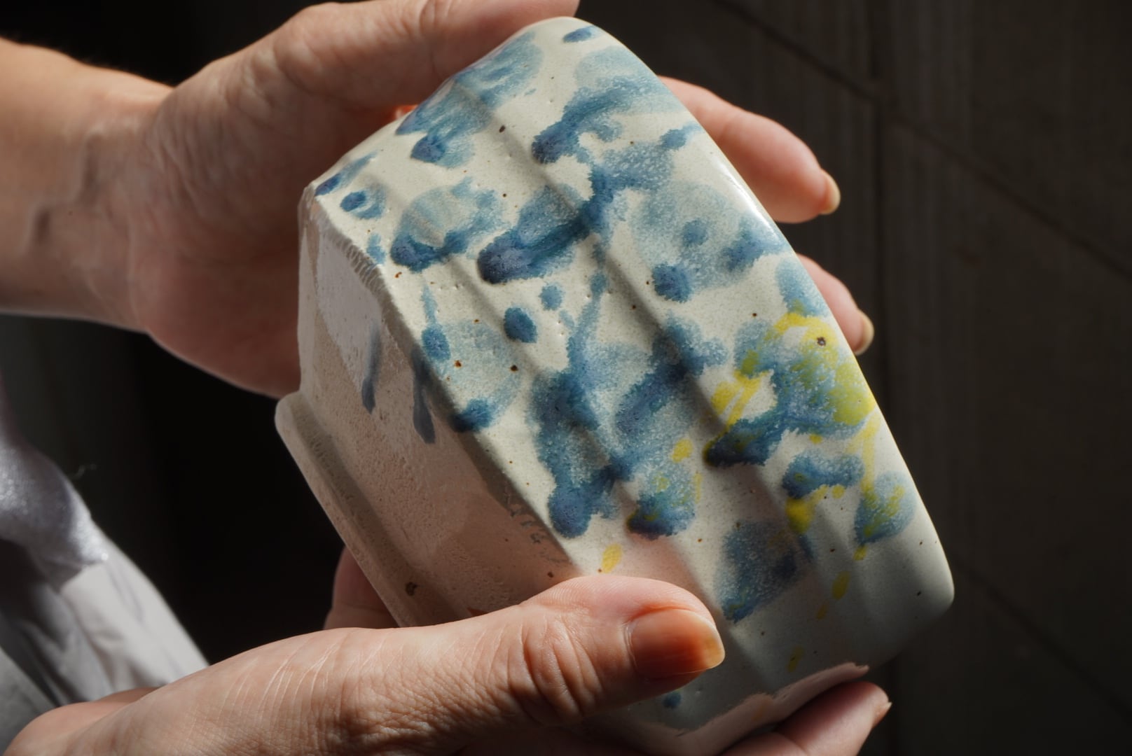 しっかりと厚みのある生地ですが、弊社の白磁の磁器土に比べかけやすいため