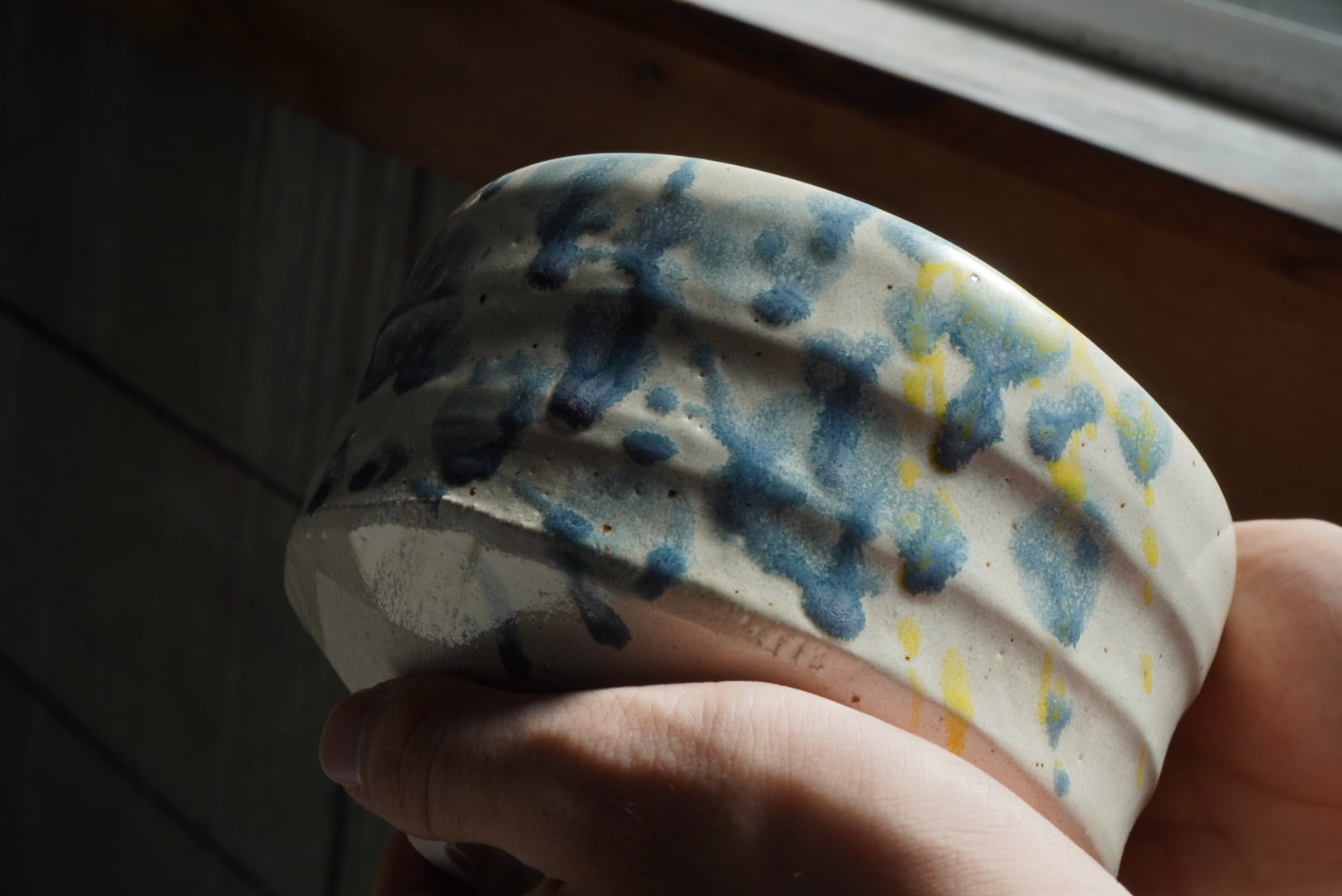 水彩画を思わせる少しポップな茶碗です。
