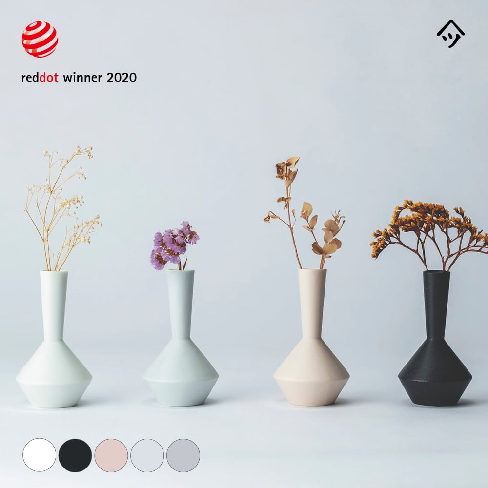Frustumはお茶の良さを再認識するために、現代の暮らしに合わせデザインをリモデルした茶器。 ダイニングをくつろぎの場とする現代に置いて、一輪挿しもひとつの茶器としてラインナップいたしました。円錐台の重なったFrustum独特の形状が、テーブルの上をいつもより少しだけ華やかに演出します。