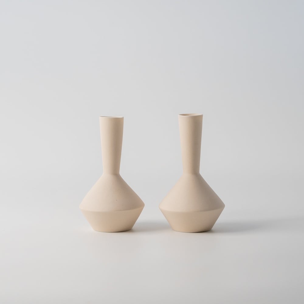 Frustumはお茶の良さを再認識するために、現代の暮らしに合わせデザインをリモデルした茶器。 ダイニングをくつろぎの場とする現代に置いて、一輪挿しもひとつの茶器としてラインナップいたしました。円錐台の重なったFrustum独特の形状が、テーブルの上をいつもより少しだけ華やかに演出します。