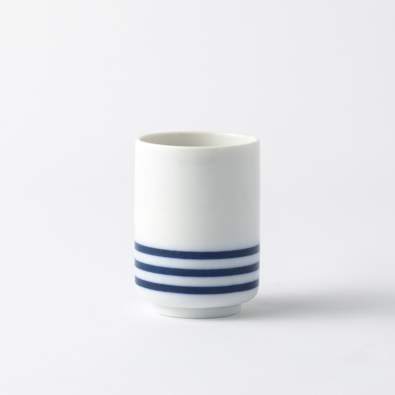 白磁とブルーラインがシンプルながらフェミニンなカップとなっております。